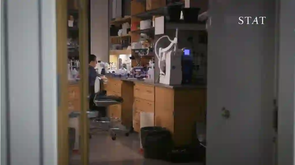 李在麻省理工学院霍维茨实验室的工位上。 图片来源:Jaclyn Jeffrey-Wilensky/STAT