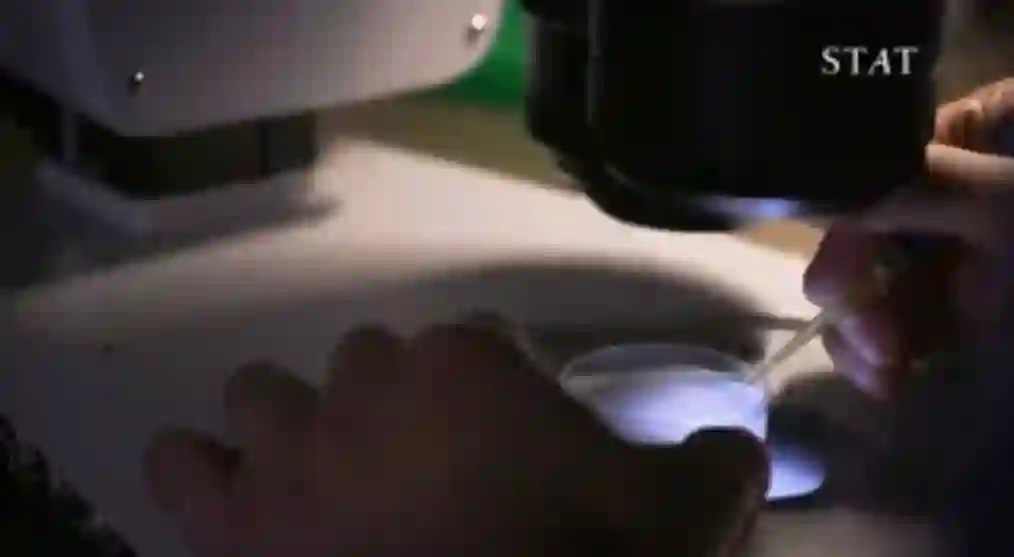 李正在训练线虫。训练一只大约需要45分钟。 图片来源:Jaclyn Jeffrey-Wilensky/STAT