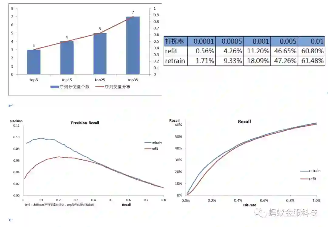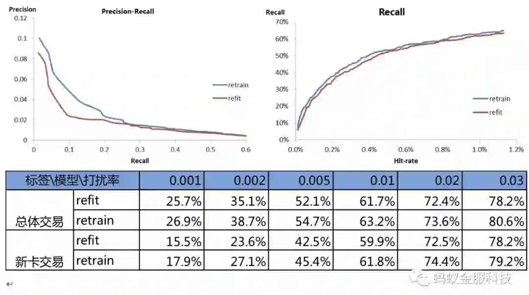我们主要刻画卡的收款序列,取每个收款事件上卡的属性及行为特征作为向量输入训练LSTM模型,将序列隐藏层最后一步输出接一个全连接层最终输出embedding向量。另我们尝试了不同位数的卡bin截断,尽量保证新卡能被历史卡bin覆盖同时粒度不能太粗,最终选择10位及12位两种截断方式。我们将卡维度的embedding及卡bin维度汇总的embedding变量T+1推送线上,GBDT Retrain模型的效果如下:模型在全量卡交易评估同打扰下可提升2-3%的覆盖率,在全量卡交易评估同打扰下可提升3-4%的覆盖率: