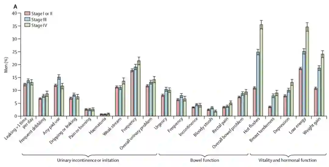 这项利兹大学Adam W Glaser教授团队牵头的研究,入组了不同分期,并接受了不同治疗方式的前列腺癌患者,全面考量并评估了其功能性转归(包括泌尿系和肠道功能、性生活、性能力和激素水平等)以及现有的医疗服务导致的潜在影响。