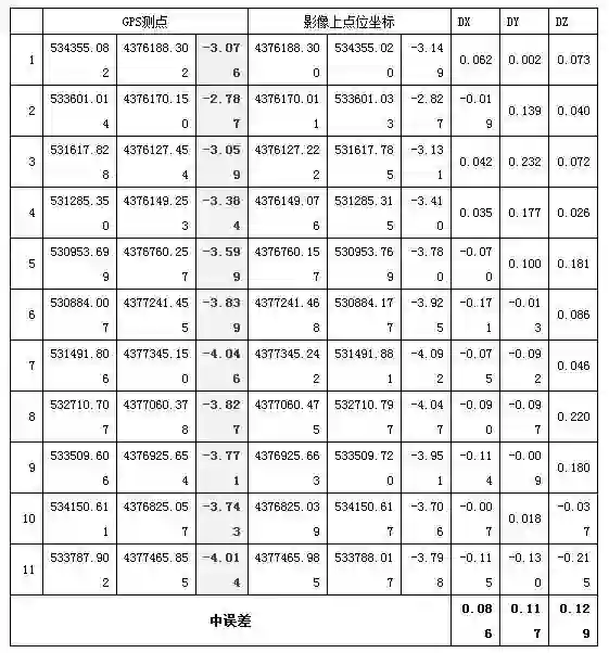利用DP-Smart进行空三解算及自动化建模后,在模型上量测检查点坐标信息,对比精度如下: