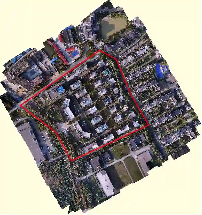 测区覆盖面积8平方公里、像片数量1805张、相重叠80%、旁相重叠65%、测区内布设12个检查点(其中有一个点由于区域影像拉花未使用),通过天津CORS采集西安80坐标、采用后差分PPK方式记录高精度POS数据。