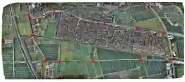 本次测试范围有效面积约0.1km²,共布设控制点12个,使用检查点36个,测试区域范围(红色范围线)及像控点分布如下: