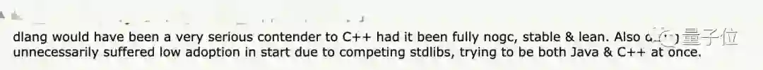 此外,Hacker News上还有网友想到了D语言(DLang),这个语言和C++的互通性很不错。而且D语言也有Carbon的不少功能,包括和C++相互调用、减少额外的开销等。