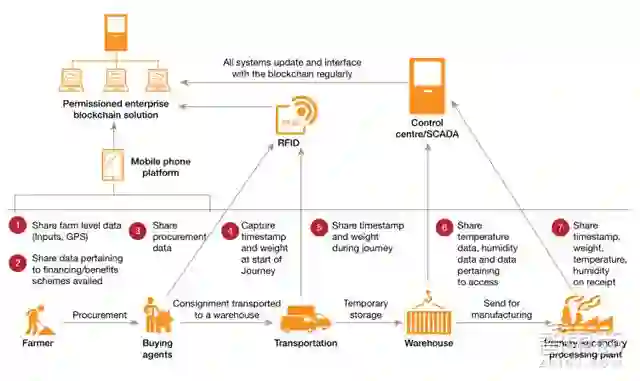 区块链技术可以实现从农民到消费者供应链追踪,即可靠的来源和可追溯性,提高透明度,降低食物价值链的复杂性和成本。其他可能的区块链应用还有记录和管理农业土地、农业保险等。