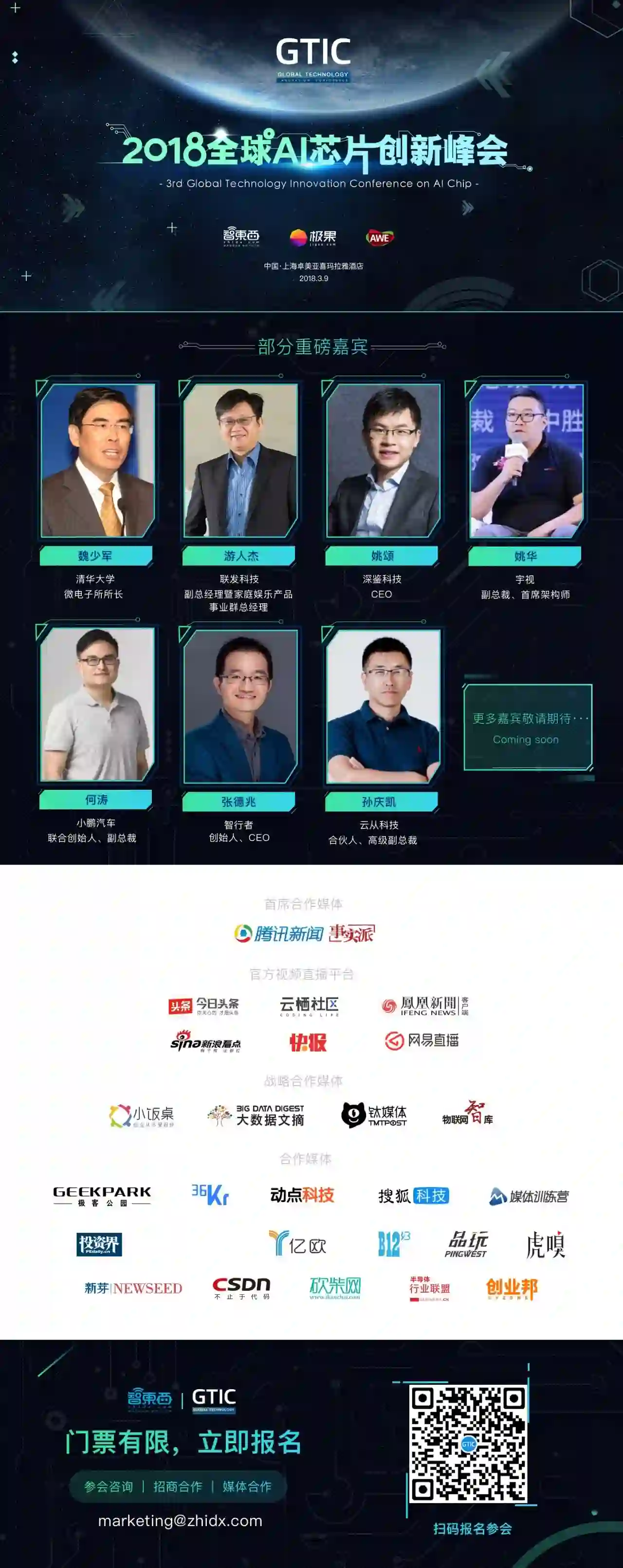 3月9日,智东西主办的GTIC 2018全球AI芯片创新峰会将在AWE同期于上海举行,这是中国首场AI芯片产业峰会。欢迎大家抢票参会。