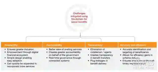 ▲区块链缓解社会问题(适应性、问责制、透明度、效率)