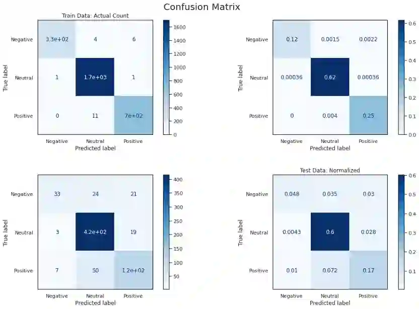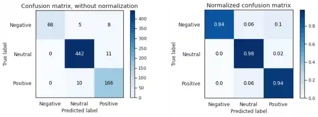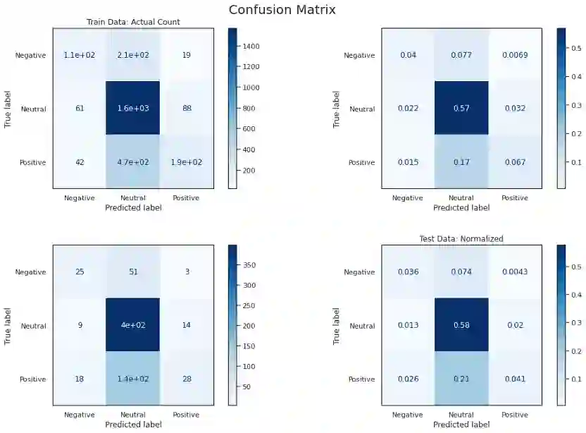 我将为后者写另一篇文章,所以这里关注前者的数据。这是一个包含更正式的金融领域特定语言的文本示例,我使用了Malo等人的FinancialPhraseBank(https://www.researchgate.net/publication/251231107_Good_Debt_or_Bad_Debt_Detecting_Semantic_Orientations_in_Economic_Texts)包括4845篇由16人手写的标题文本,并提供同意等级。我使用了75%的同意等级和3448个文本作为训练数据。