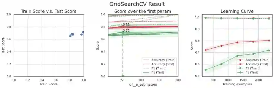 用默认参数训练14个不同的分类器,然后用网格搜索交叉验证法对随机森林进行超参数整定。