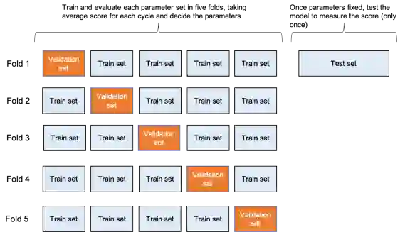 首先,输入数据以8:2分为训练组和测试集。测试集保持不变,直到所有参数都固定下来,并且每个模型只使用一次。由于数据集不用于计算交叉集,因此验证集不用于计算。此外,为了克服数据集不平衡和数据集较小的问题,采用分层K-Fold交叉验证进行超参数整定。