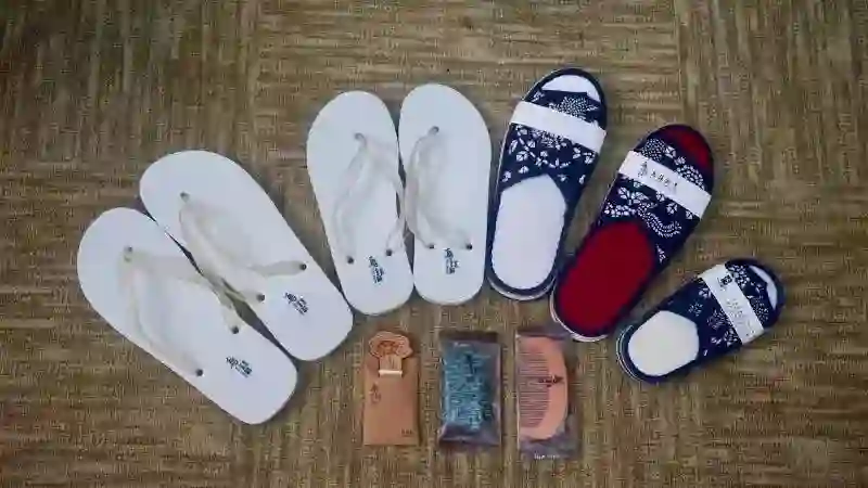乌镇酒店提供的一次性拖鞋和针线包等