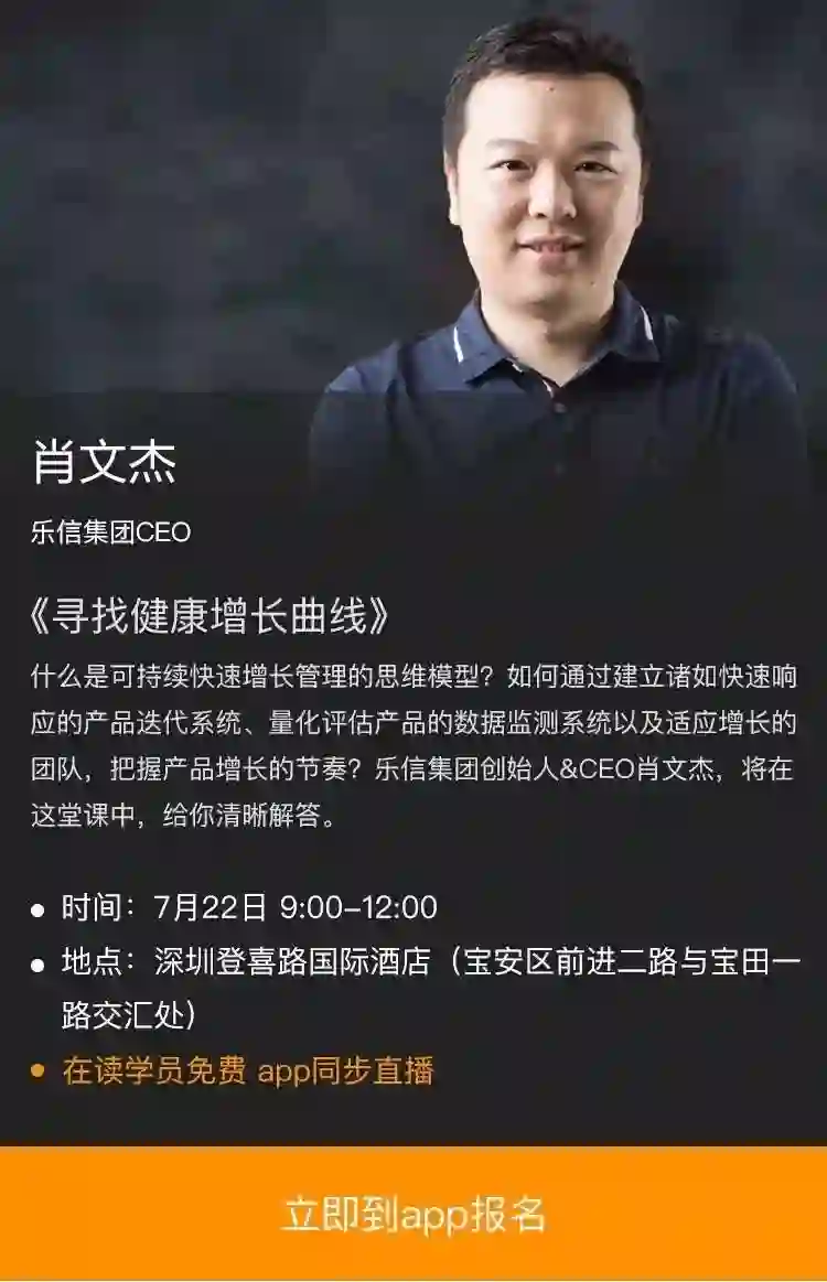 7月22日,肖文杰将登上混沌大学课堂,主讲《寻找健康增长曲线》,下载“混沌大学”APP,注册为学员,即可观看混沌大学课程回放。