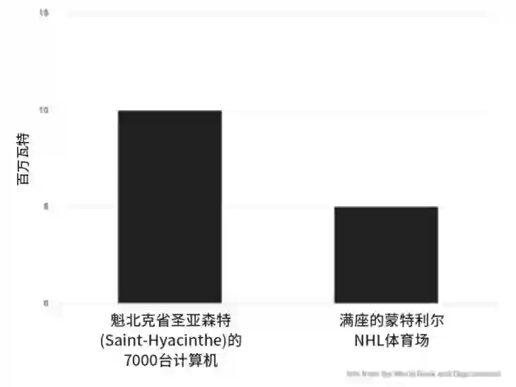 但这些矿机也是能量的无度索取者:仅圣亚森特的 7000 台计算机所消耗的能量就超过了蒙特利尔加拿大人队在附近曲棍球赛场的用电量,即使在一个座无虚席的比赛之夜也是如此。