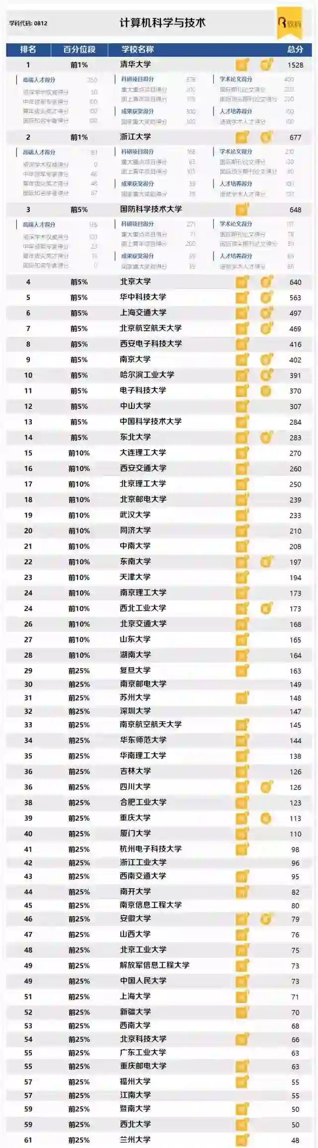 不同学科的学科点基数不同,因此竞争的激烈程度也不一样。有的热门学科如计算机科学与技术、工商管理等,参加排名的高校在300个左右,而像特种医学、大气科学这样的小众学科,设置的高校数都不超过20个。为此,中国最好学科排名引入了百分位段的概念,在绝对数排名以外还给出了每个学科点在本学科所处的相对位置。