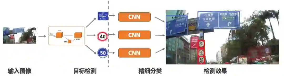 模型训练难度大:我们需要处理的交通标志有几百类,且各自出现频率差异很大,使用单一目标检测模型完成如此巨大的分类任务,模型训练难度太大,收敛缓慢,召回率、准确率上难以平衡;