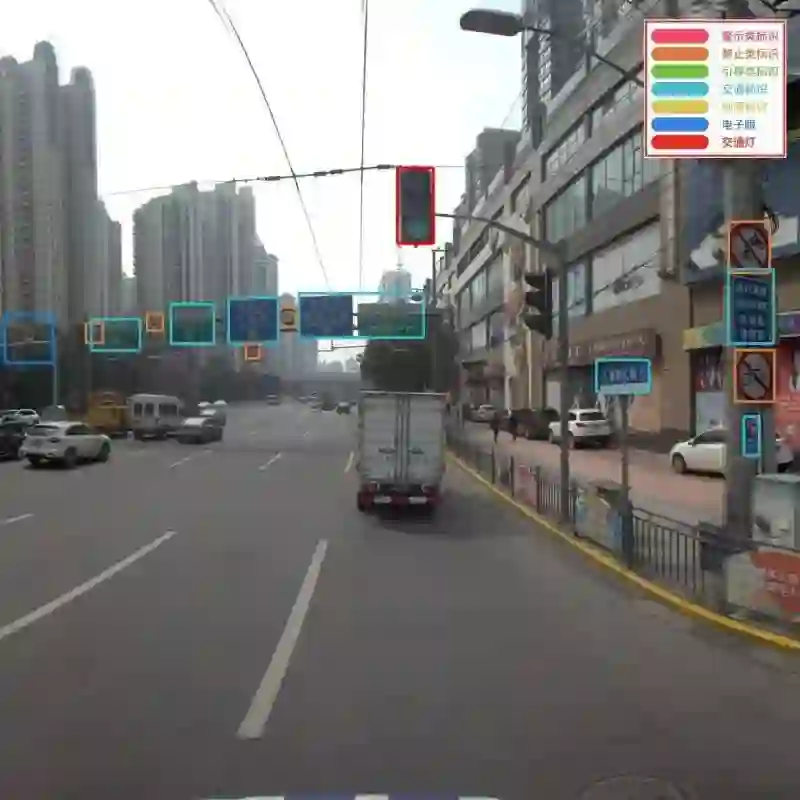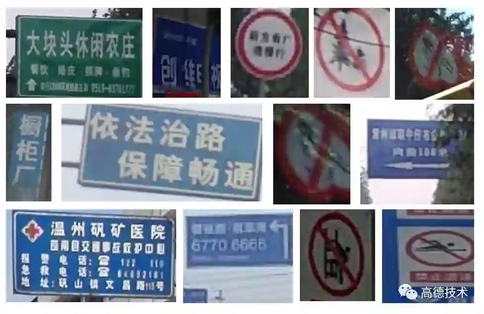 交通标志检测,特指在普通街景图像上通过自动化手段检测出各种类型的交通标志,如限速、禁止掉头、人行横道和电子眼等。这些检测结果将作为生产数据交付给地图数据制作流程,最终演变为服务于广大用户的地图数据。