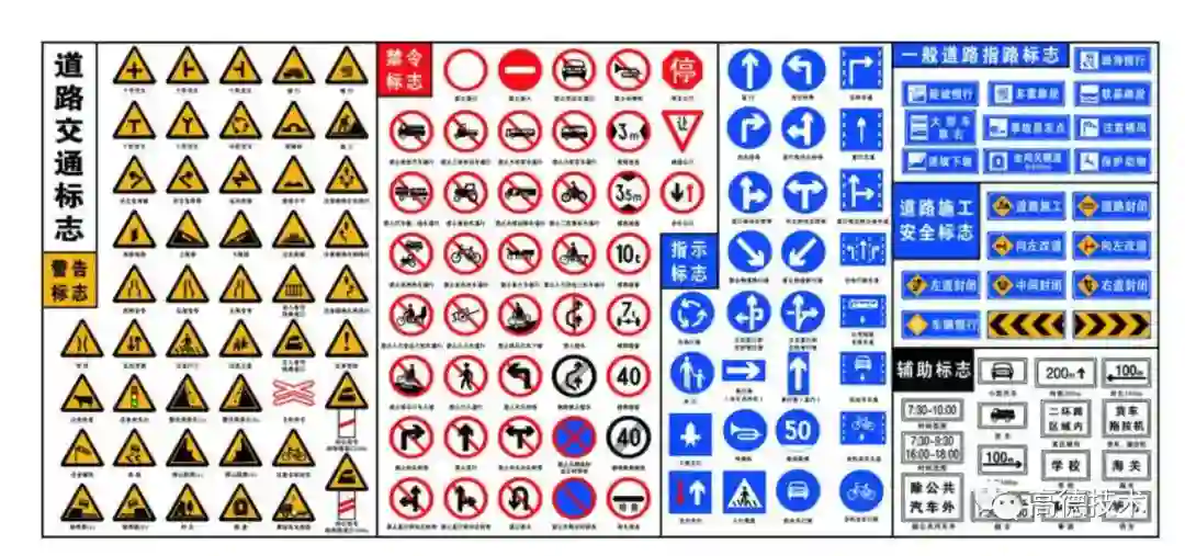 形状多样:常见交通标志的形状有三角形、圆形、方形、菱形、八边形等,还有地面标线、电子眼、信号灯,以及限高杆、栅栏等物理设施;
