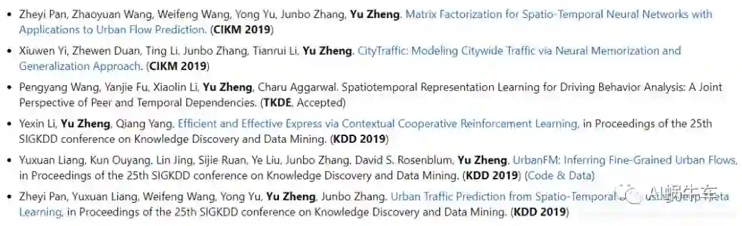 郑宇。JD的副总裁。主要研究时空序列数据挖掘,空间维度为主,并且用在traffic flow上的应用。主页:http://urban-computing.com/yuzheng 来感受一下大佬2019年的一点小工作。(看了这个,感觉我太难了)