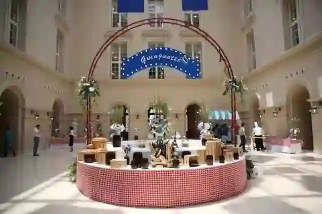 回到大堂,穿过庭院,拐到火车站,这边同样装饰了巴黎元素。