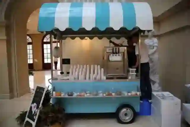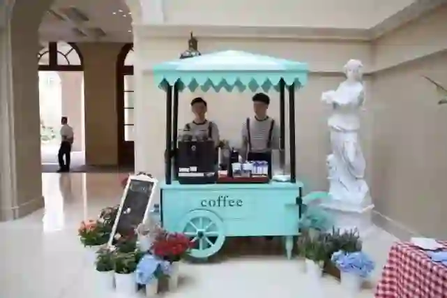 果汁台、咖啡吧、冰淇淋车也纷纷准备就绪。