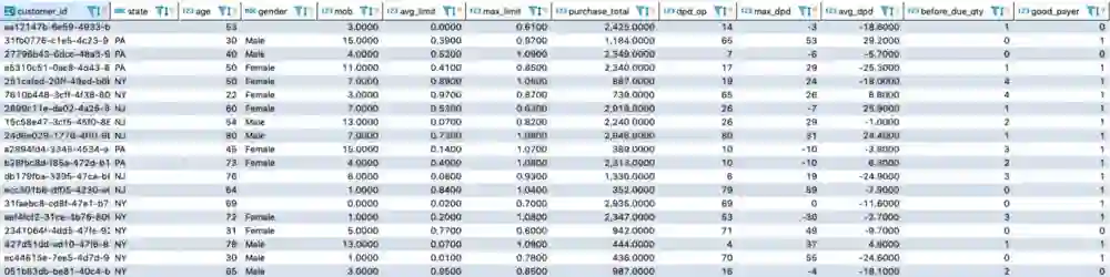 创建的分析数据库示例,用于提供预测客户违约的行为评分模型。