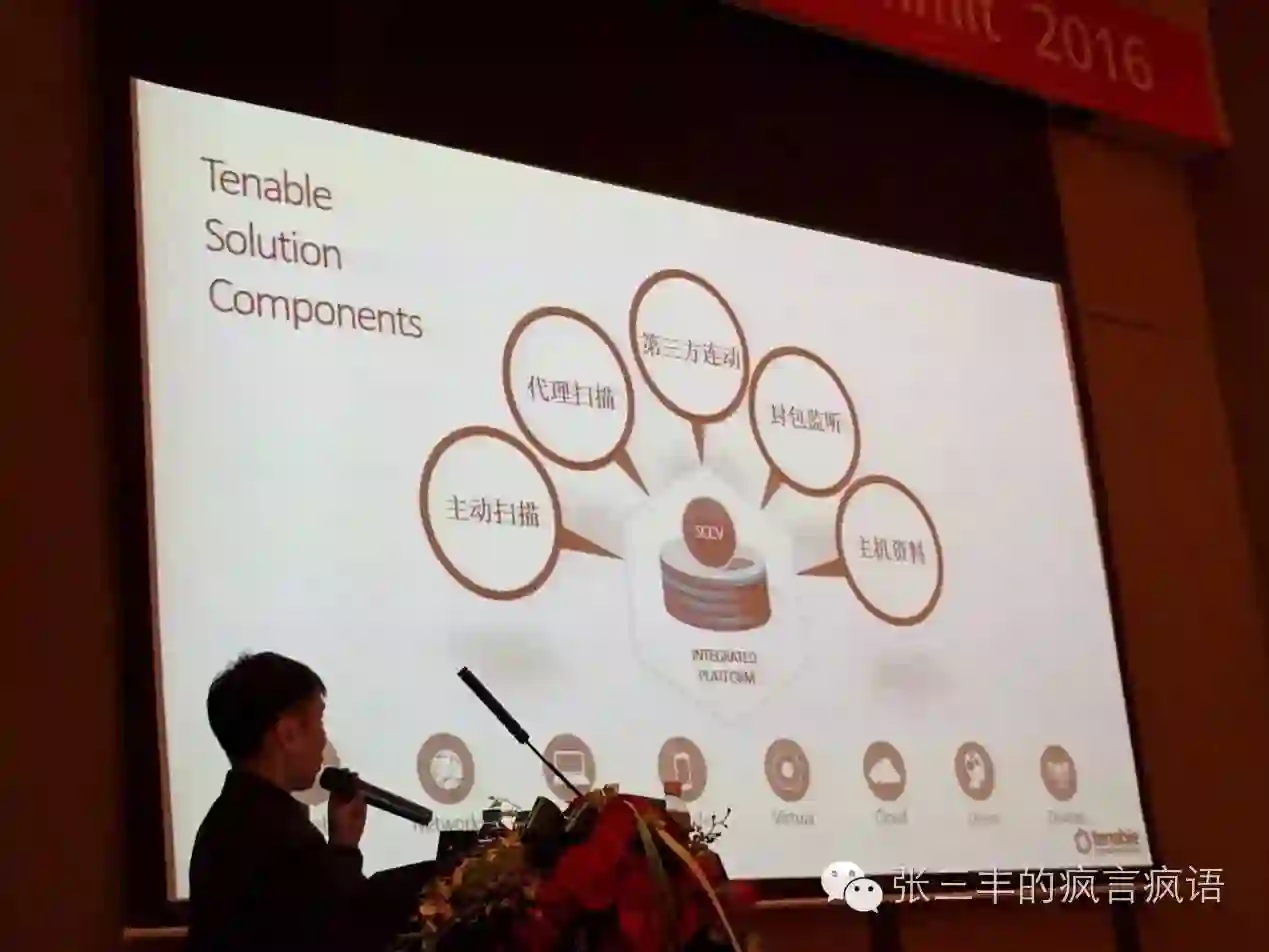 除了从宏观上的设计的,也有具体问题的议题。比如在企业内进行资产的识别以及其安全漏洞的评估这一老大难问题上,其中一家厂商除了传统的主动扫描,还加入了网络流量监听和防火墙活动日志的记录,从而识别网络中冒出来未被识别,未被管理的web、网络、终端、移动设备等等。