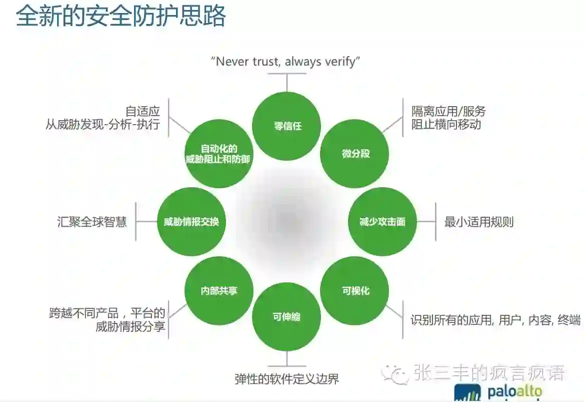 也有厂商的议题总结了当前流行的一些新的安全防护思路,包括像google已经在做的“零信任”,前两年VMware研究的“微分段”,安全可视化,威胁情报交换等等,特别提到的自动化的威胁阻止和防御其实对防御的基础要求是很高的,暂时也没有看到能够做得很好的自动化方案,不过不可否认是对于一些较为初级的安全问题可以通过自动化处理,使得分析师更聚焦于高级的攻击事件中。