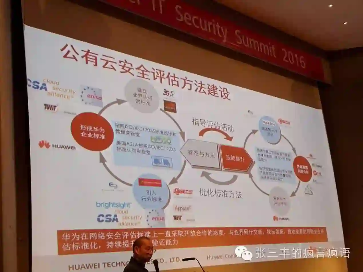 此外,云安全方面CSA大中华区主席李雨航老师还分享了不少云安全建设的标准,包括“CSA云计算十二大安全威胁”,“云安全指南”,“云安全标准框架”等等。还包括了华为自身公有云建设的经验分享。