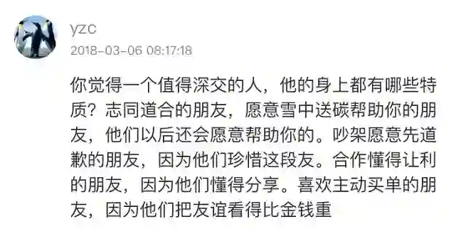 值得深交的人,无谓年龄、性别、阶层,但他们一定有根植于内心的人品,无需提醒的道德自觉,对人对事流露出的教养,以及对这段友谊的尊重。