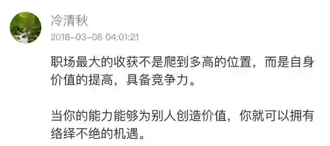 小椰子:无论是生活还是职场,都是靠实力说话。如果你不想被快速发展的社会所淘汰,就必须持续提升自己的能力。