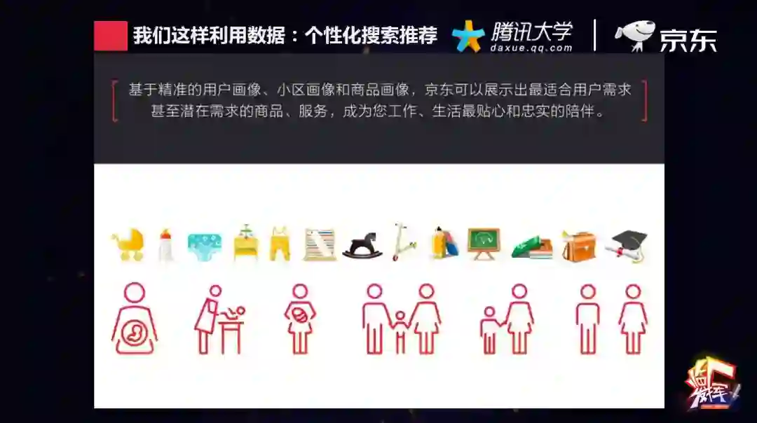 京东拥有自建的物流体系,可以用很精确的商业小区的维度去判断这些用户的共性。比如这个小区的用户,他在购买婴幼儿商品时,选择的是哪个品牌的进口奶粉,选择的是国产还是进口的电饭煲,这些数据往往非常准确。