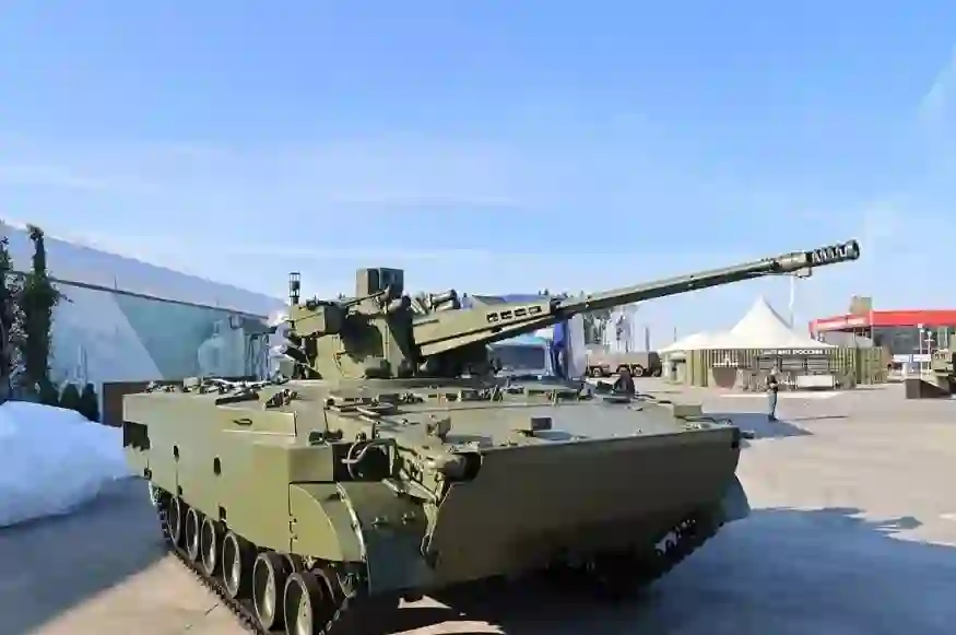 首先,其内部安装了类似BTR-82A装甲输送车的战斗舱,里面配备有30毫米2A72自动炮和7.62口径PKTM机关枪。此外,战车上还安装了带TKN-4GA-01防空瞄准器的组合系统,该瞄准器可全天候工作,另外还装有新型武器稳定器和PTRK 9K115“混血儿”(Metis)反坦克导弹。