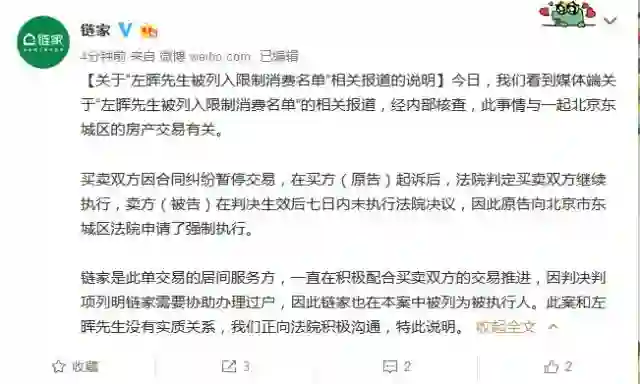 4.链家回应:此案与左晖没有太大关系,正向法院沟通
