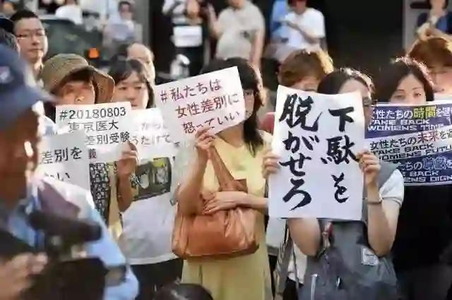 头图来自东方IC,2018年8月3日,日本东京,当地民众在东京医科大学前举牌示威,抗议该校在大学录取时对所有女考生扣分的行为。