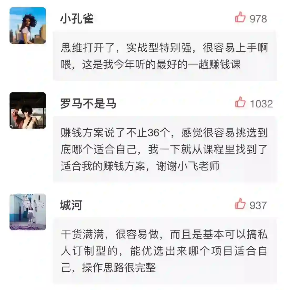 这一次,王小飞特地整理了15节课,共36个最易上手、最没有门槛、拿走可以直接开干的36个小而美赚钱项目,让你的业余时间至少能多赚2万!
