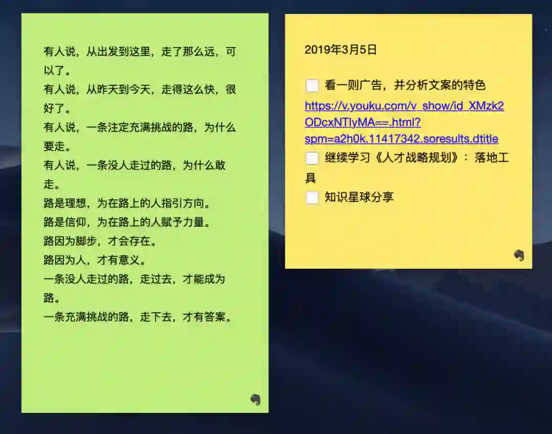 这是我经常用到的地方。比如在构思一篇文章时,就先写下一个个想法,然后再把它们归类,最后得到文章的主体架构,之后便是填充。