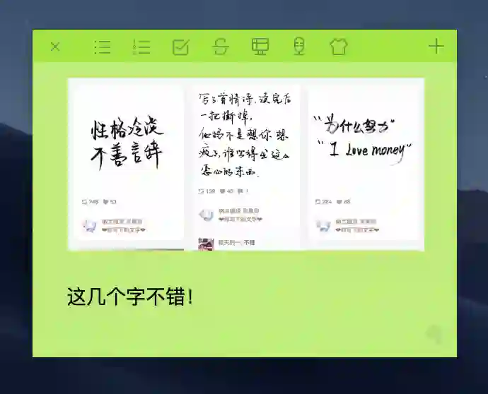 它可以改变颜色、同时设置多张便签、便签置顶、插入图片,基本满足大多数使用场景。