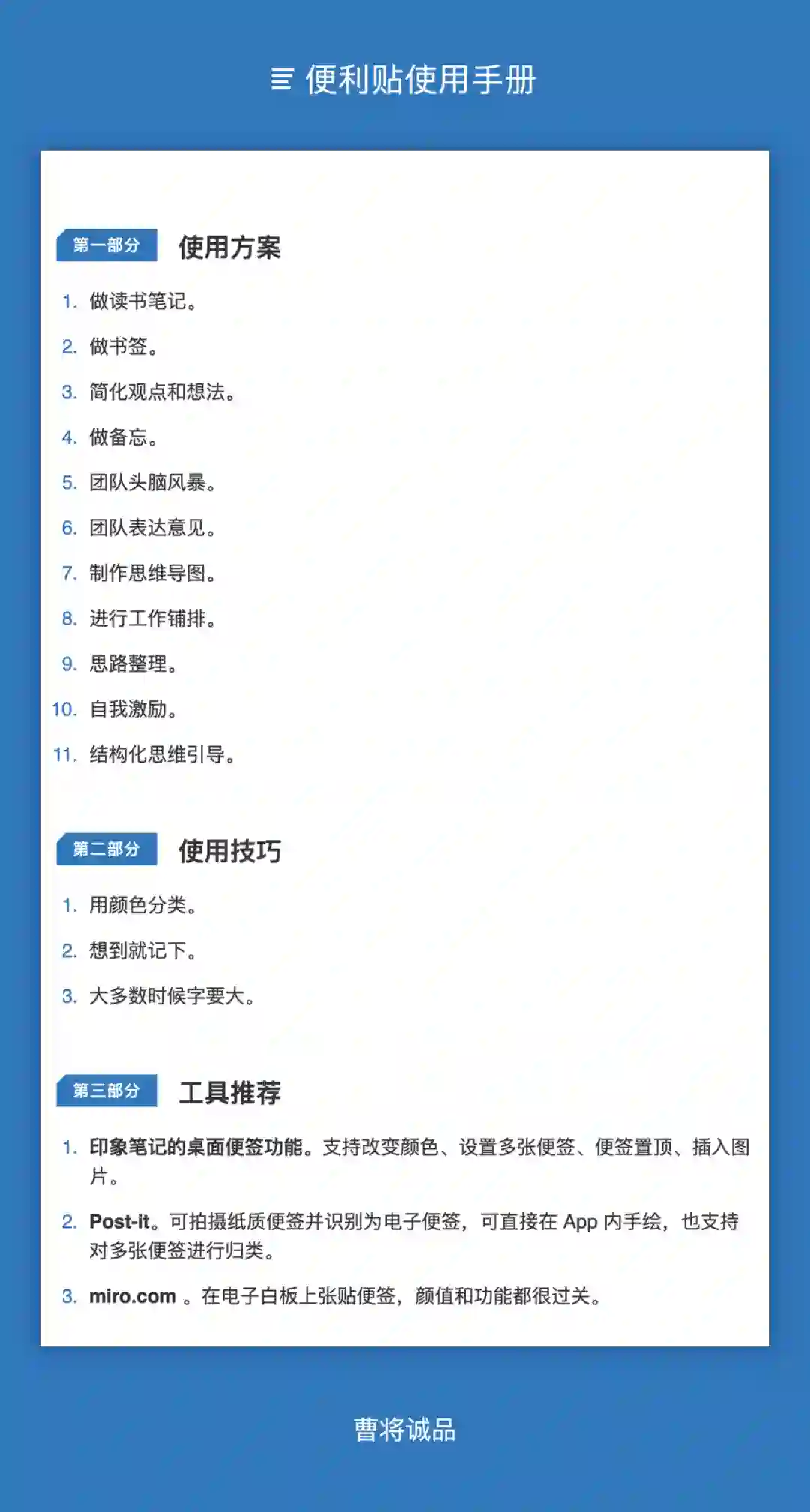 本文结合自己和同事的实践,以及 Post-it 官网的案例,整理出一套职场上的用法,分享给大家。