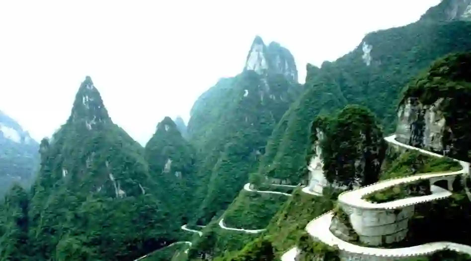 最后一句话,这幅照片是我在天门山拍的一张照片,这张照片中的道路曲折环绕,最后到达了天门山山顶。