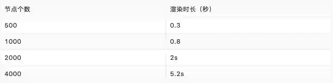 国际化、RTL、无障碍能力全面支持。另外针对中后台表单大数据量场景做了大量性能优化,比如普通 table 随着数据不断增长 render 会越来越慢,大致如下:
