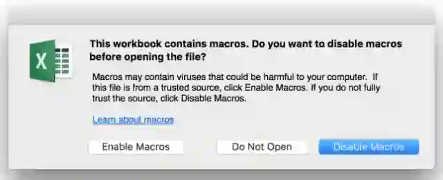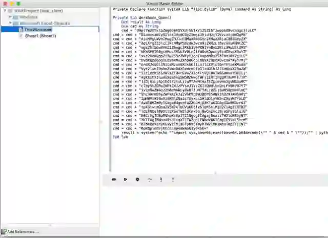 当受害者打开该恶意文档,会出现以下宏调用界面,如果点击enable macros按钮之后,恶意宏代码将会执行。