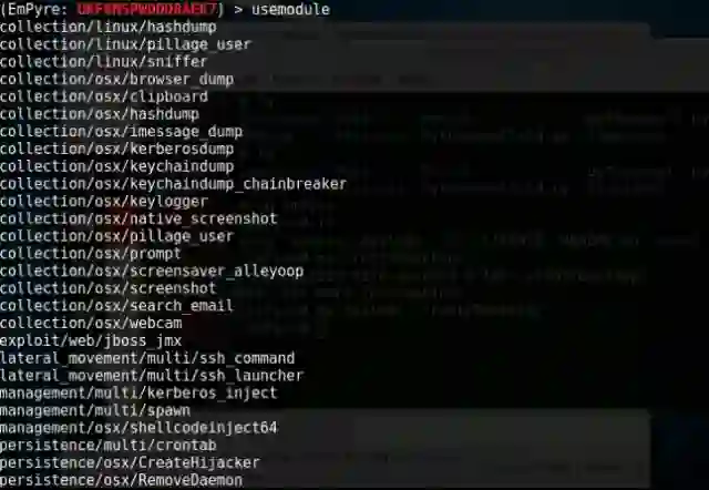 EmPyre是一款基于Python,远程入侵OSX系统的Post Exploitation框架工具。它内置有OSX漏洞利用模块,与Metasploit相比,让人耳目一新。