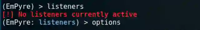 进入Listener菜单,键入options查看信息