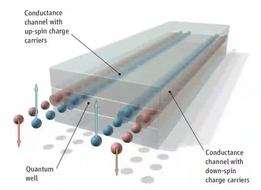 拓扑绝缘体示意图,中心一层为HgTe,上下两层为绝缘物质丨斯坦福大学官网