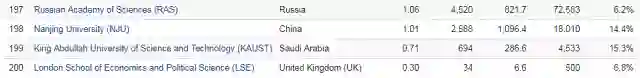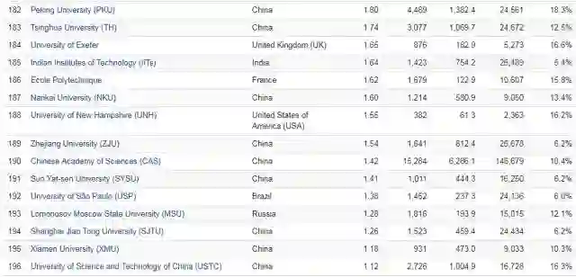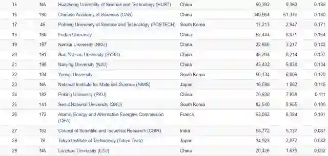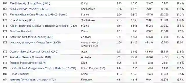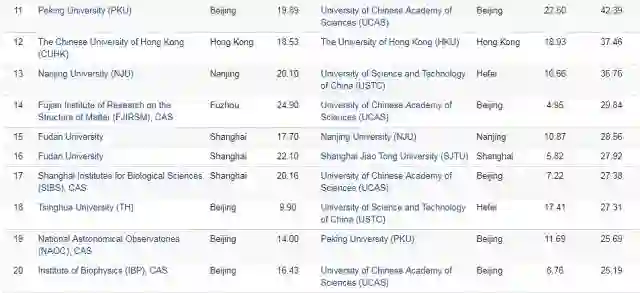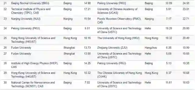 不过,好消息是,仍然有另外 14 家中国机构榜上有名,主要集中在 160~ 200 之间。