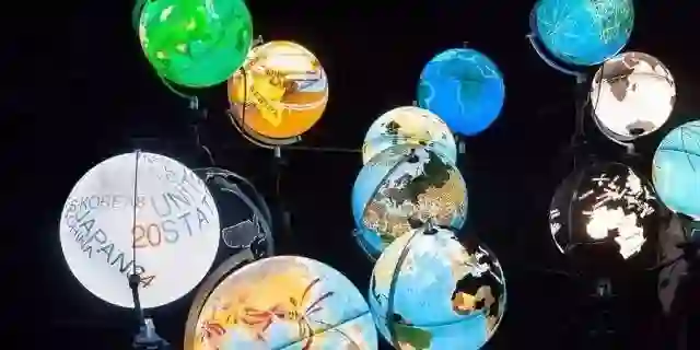 下图展现了中国学术国际合作情况,其中,最大的绿色圆圈代表中国(绿色是亚洲国家),红色代表美洲国家,蓝色是欧洲。圆圈本身的大小代表了该国综合合作项目的多少,圆圈之间的连线表示合作强度。