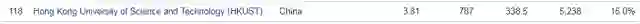 在这份榜单中排名最靠前的中国大学,是香港科技大学,位列第 118。