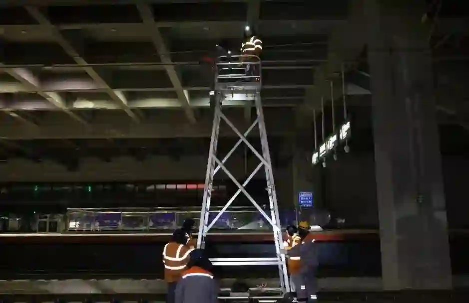 高铁夜间:工务段要对线路进行检查,供电段要对供电设备(如供电网)进行检查,信号段要对信号进行检查,当然还有我们的动车组要回库进行检修和维护。