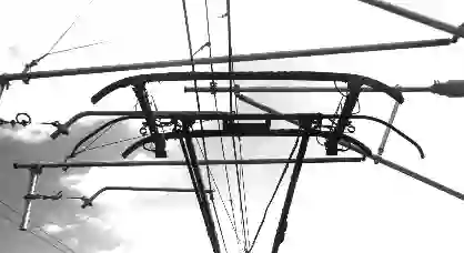这个小家伙看似柔弱,但却能承受住27.5千伏的高压电!受电弓从接触网上获取25千伏(接触网电压一般电压为25千伏,5分钟内瞬间电压为27.5千伏)单向工频交流电,经主断路器传递给牵引变压器,经整流器转为中间直流电路,经逆变器,将直流电逆变为三相交流电,供给三相异步牵引电动机,这样机车就跑了。