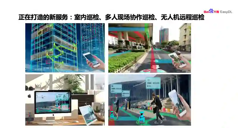 第三就是增强现实,通过对空间进行识别,将业务数据叠加到现场,实现数据的可视化。最后就是利用云计算,实现服务部署的简单化、数据可配置化。